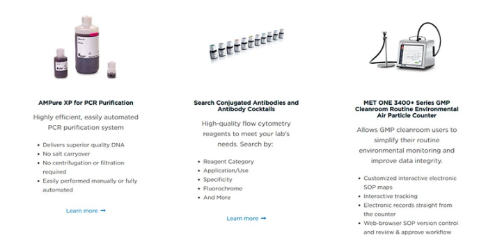 Beckman offers different types of genetic research kits to scientists to ease their work with automatic machines instead of wasting time with traditional solutions & mechanisms. Beckman offers Agencourt AMPure XP system, FormaPure DNA, FormaPure RNA, Ampure-PCR purification, FormPure Total, Genfind v2 DNA purification system, and others. All those have different features, everything mentioned in the product description.