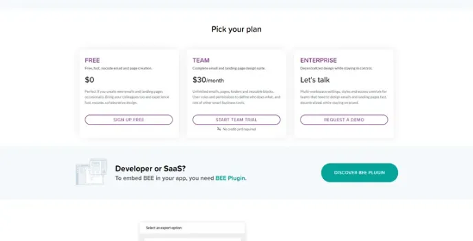 BEE Free allows you to get access to the best collection of their free templates without any issues of any kind. You can easily start by picking up a template, customizing, and saving it all with the free version. It also allows you to go for the paid version that is known by the name of BEE pro; this service allows you to unlock all the templates available.