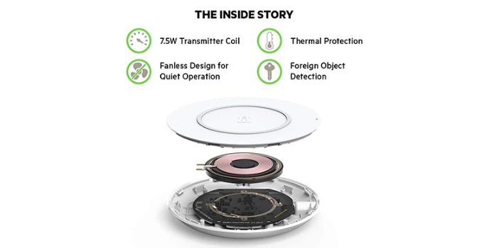 Like all other wireless phone chargers, Belkin has some amazing features also. For instance, the pad has a thermal regulator, which will help the device dissipate the heat evenly and recharge the battery faster. Moreover, it can charge the Qi-enabled device much faster than the normal ones.