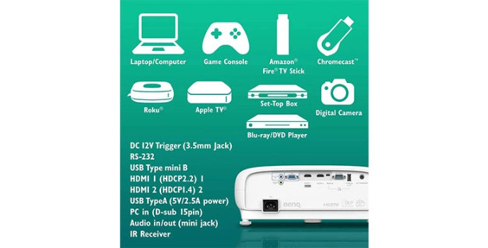 BenQ TK800M 4K UHD has DLP, one of the leading technologies used in 90% of cinemas and 100% IMAX theatres, and the same is used in this projector. Similar projectors in the market include the Optoma HD27HDR projector and the Viewsonic X10 4K projector.