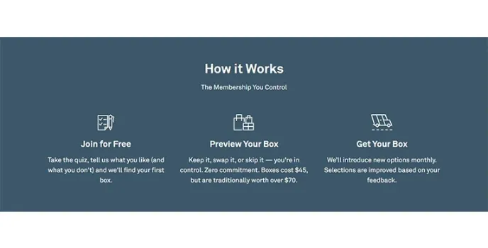 Bespoke Post offers the best subscription boxes for men to access different kinds of clothes, accessories, grooming tools, home decor, outdoor, everyday carry tools, barware, kitchen tools, etc., quickly and easily. If you want to send grooming gifts to your friends or family, try a Bespoke post that offers famous grooming accessories like Wolf complete skincare set, solid cologne kit, anty-ashy body kit, etc. Once you like Bespoke, it is free to sign up and get an option to receive a subscription box every month with your regular tools, clothes, and products, so you no need to think about regular shopping to purchase monthly needs.