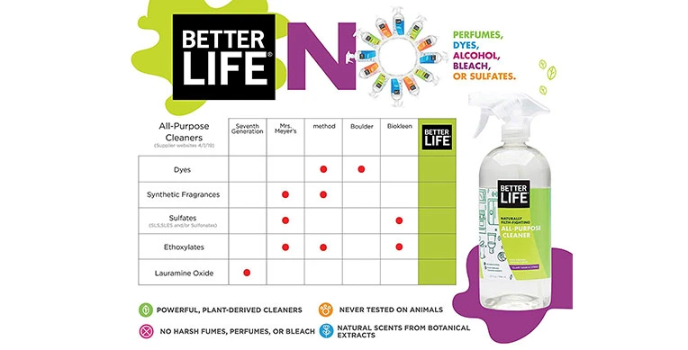 It does not contain any harmful synthetic ingredients like alcohol, dyes, chlorine bleach, petroleum solvent, synthetic fragrances, so it is non-toxic. A better life can be used on the tiles. The product can be used to clean the tub and grout. All surfaces of the bathroom can be deep cleaned with a Better life bathroom cleaner. It removes soap scums thoroughly, obliterates stains of hard water, and gets rid of rust without fumes or funny fragrance.