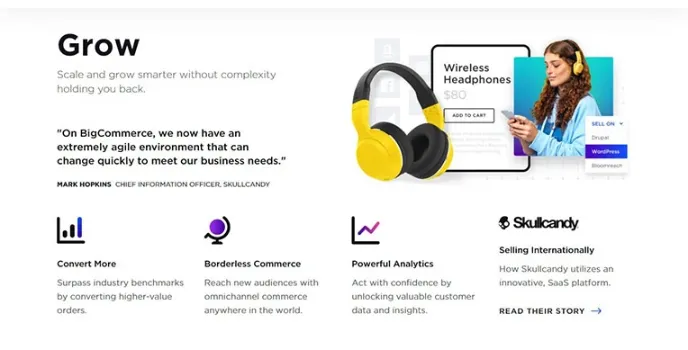 BigCommerce gives you various information that may include converting the industry into higher value Orders and a borderless Commerce, which reaches a new audience anywhere you go in the world. It also has powerful analytics, which acts with confidence by unlocking valuable customer data and insights. Last it gives the purchaser an International selling platform to utilize and a SaaS platform.