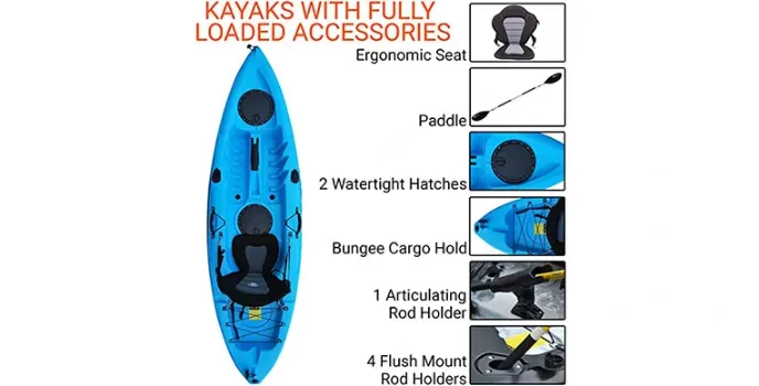 If you are looking for a kayak with the best-foamed seats and fishing rod holders, then the BKC kayak is the best for you. Their Kayaks are focused on comfort and support and have been designed in such a way that it provides both adventure and safety quotient to you.
