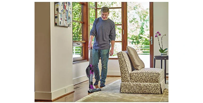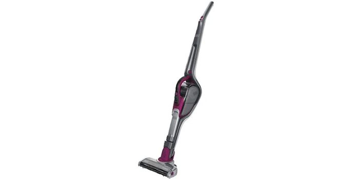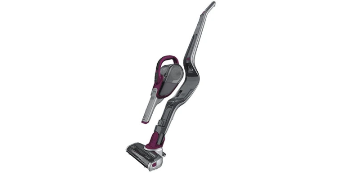 The Black Decker cordless vacuum cleaner is cordless, eggplant purple, 2- in-1 stick, a hand vacuum that acts like two vacuums in one; one cleans up dirty floors, and the other helps remove little messy places. It can get around furniture and different obstacles quickly. The controlled blender bar transfers residue and trash in rugs, and it has a dustbin capacity of 16.9 ounces.