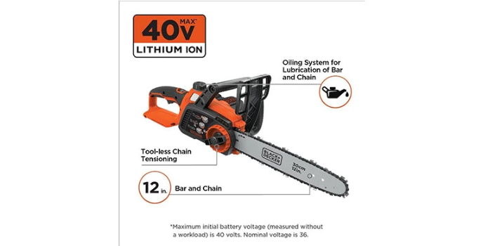 Black Plus Decker is here to offer the best electric chain saw as their product has been carefully crafted to provide for a budget-friendly option that comes with additional safety features. It has this interchangeable lithium no battery system along with an in-built automatic filled oiling system to ensure proper functionality. Has this 40volts MAX Lithium Ion battery for a much longer run time and overall life. This has a 12’’ premium bar and chain along with an automatic oiling system. This electric chain saw is especially suitable for the purpose of pruning branches and also for cutting fallen limbs.