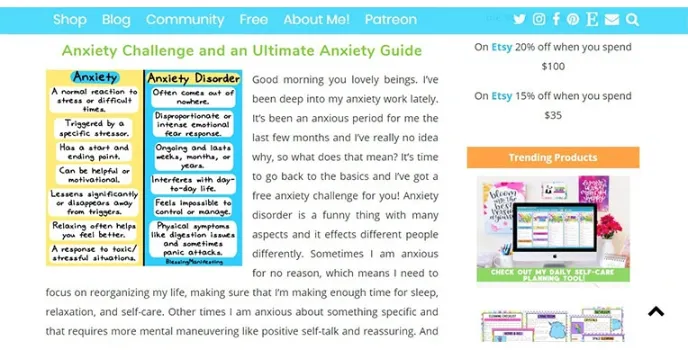 - Offers self-care and anxiety overcoming tips