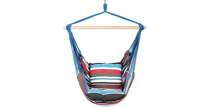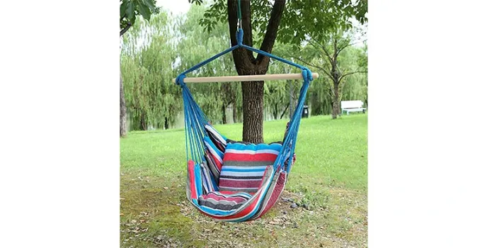 Blissun hanging swing chair with two cushions provides maximum relaxation both indoor and outdoor, a good model design for travelling. The swing chair is made with high-quality fabric and polyester cotton that never breaks or tears with regular use and comes with two pillows, which are more comfortable and easy to handle and perfects for individuals of all ages. This hammock chair comes with an additional hardwood spreader bar, which is more intense than the conventional swing.
