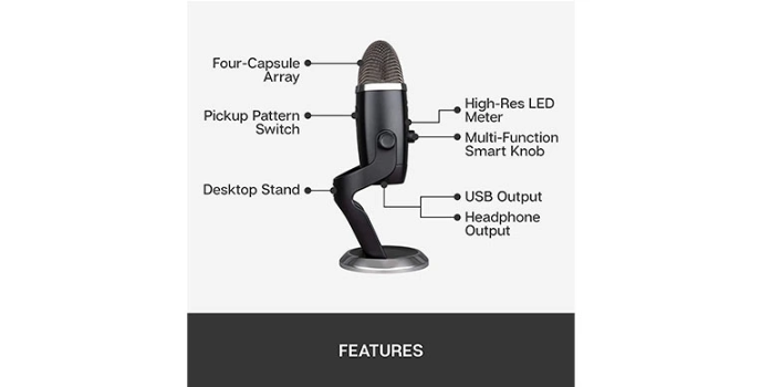 The Microphone from Blue Yeti can capture exceptional broadcast sound with greater focus and clarity, which works quite effectively for professional gaming, twitch streaming, podcasting, and various YouTube productions.