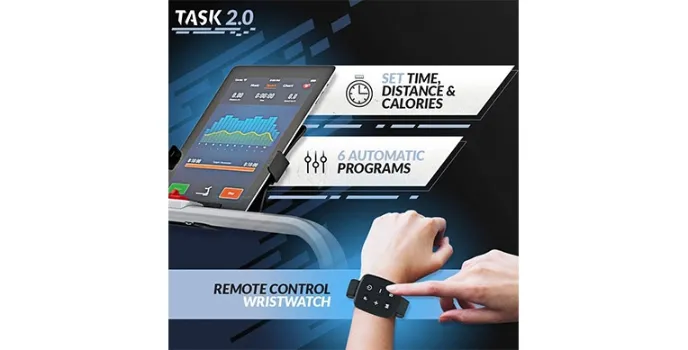 The portable treadmill from Bluefin includes a remote control for managing your training at the simple touch of a button, with the help of a wearable remote control.
