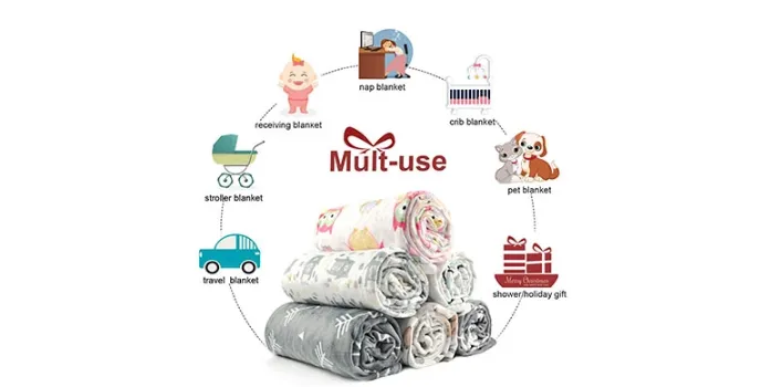 The Boritar infants receiving blankets are pretty amazing and measure 50”x60”. They come in a great design that have a dotted plush fabric backing. The material used on these receiving blankets is super soft, warm yet extremely comfortable to keep up with the delicate skin of the body. The blankets are quite cute and roll up quite simply as well.