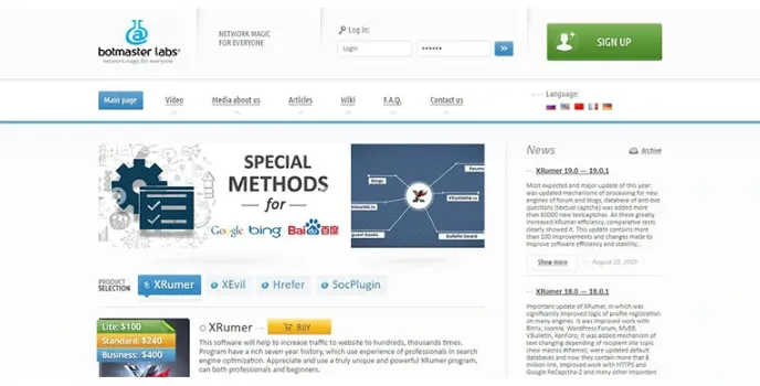 BotmasterLabs Is a program with a rich seven-year history used to experience professional Search Engine Optimisation within a period unique and Powerful Xrumer program that both professionals and beginners can do. The site also has video media, about us, articles, Wikipedia, frequently asked questions, and contact us sections which will fulfill all your problems and give your perfect solution and other requirements.