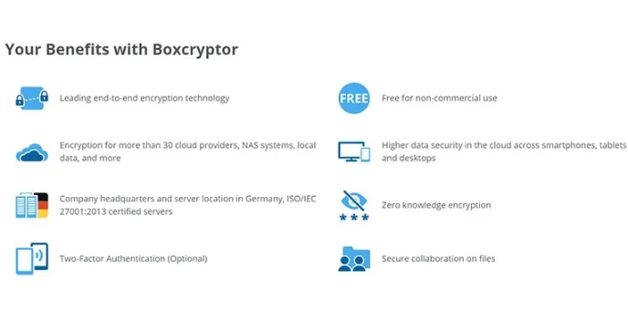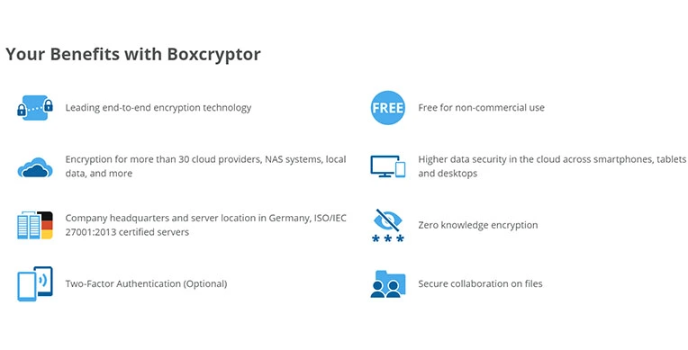 Suppose you are looking for the best encryption software for cloud security. In that case, you can use the Boxcryptor that comes in with computer security settings and has AES 256 standard encryption protection system, which supports 30 + cloud storage services in the ideal Smartphone and templates too. It also provides a two-factor authentication system to protect your data.
