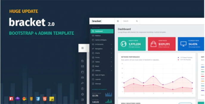 If you are looking for the perfect HTML template, then Bracket makes for the ideal template. It is a bootstrap four admin template that comes with jQuery plugins, making it the perfect choice for your projects and tasks. It comes with an easy-to-use modern and flat user with a great combination of features.