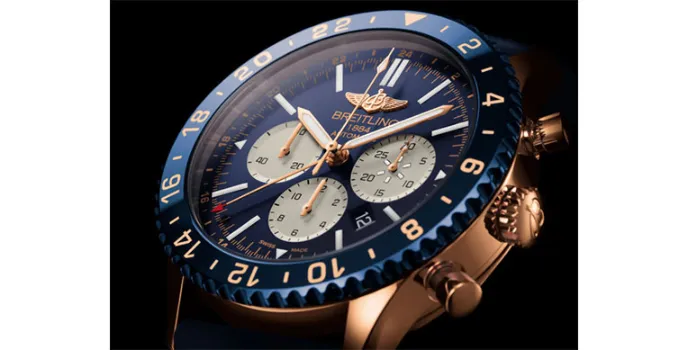 Measures flight time accurately while juggling with times around the world. To power, this instrument is attired in a blue and old livery featuring extreme user-friendliness, and officially chronometer is certified with COSC. The watch from Breitling Chrono Line has a screw-down case back design. It is double-gasketed, and the chronograph pushers are very simple and mushroom-shaped to give an elegant look to the watch and it is rated water resistance at 100m depth of water.