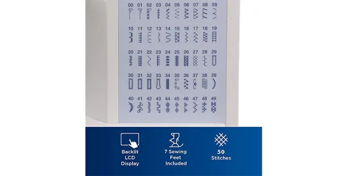 This high-quality Brother tool features 50 in-built stitches with five auto-size buttonholes. So this device lets the user stitch easily and perfectly. It has an automatic needle threader helping the users to push the thread through the needles.