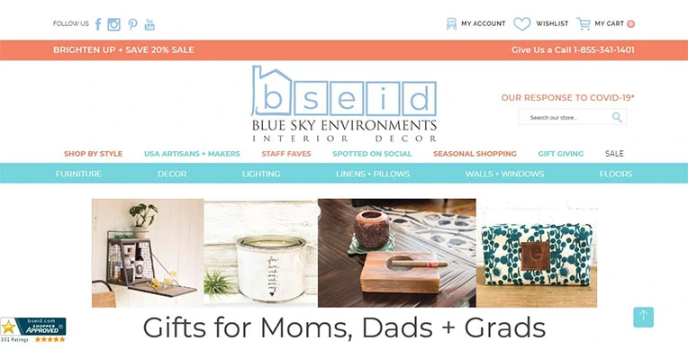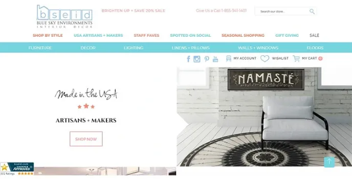 Bseid.com is the Blue Sky Environments Home Decor online marketplace that provides a large selection of furniture, lighting, windows, accessories, Blue Door Blog, design services, and a broad range of design work. They have a small market in Houzz with collections of the same items found at Bseid.com and our design work catalogs. Due to the Houzz platform's specifications and restrictions, they cannot list or desire the full product catalog.
