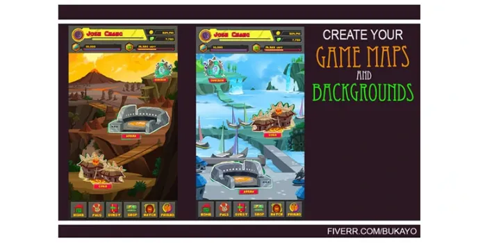 Bukayo is a professional Game Designer platform that can rapidly adjust to modifications. They use flat colours with simple shadings and offer mapping and backgrounds for gamer builders.