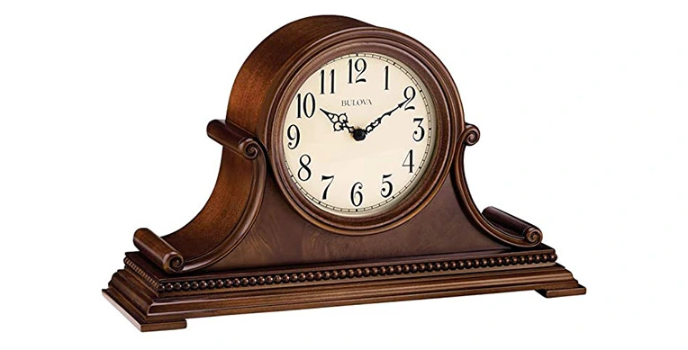 Enhance your living space by adding a unique yet elegantly made Bulova Mantel Clock that can be placed on shelves or other fireplaces. As we know, various designs, brands, and prices of the best clocks are available in the market but choosing one it's really sound. Nevertheless, the suggested mantel timepiece would be the right choice for you, which looks expensive, antique for a beautiful appearance. Coming to its construction details, bent hardwood sturdy case with convex protective lens equipped chronometer provides a stable yet quality outlook for embellishing effect.