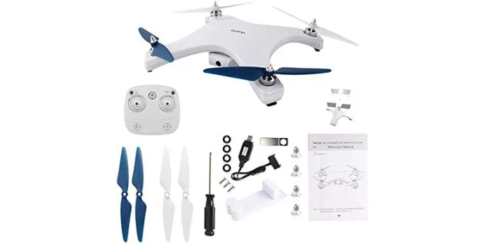 This drone has a GPS positioning facility. It has a single button press return with low battery auto return and loss of control auto-return functionalities for super stable worry less flight.