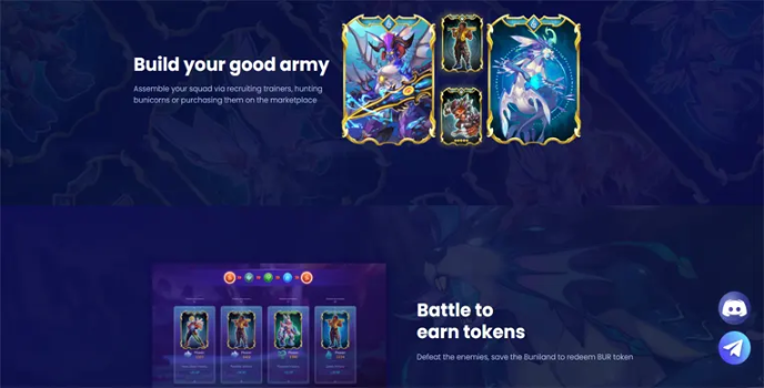 You can build your own army squad by assembling trainers for searching Bunicorns and purchasing them from the NFT marketplace. You can take part in battles to save the Buniland and earn BUR tokens by defeating the enemies. The game allows you to raid evil bosses and share your BUNI & BNB pools.