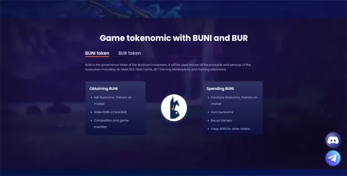 BUNI Token is a key component of the Bunicorn Game. The BUNI coin is used across all products and services of the platform, such as AMM DEX, yield farms, NFT gaming marketplace, and gaming metaverse. You can obtain BUNI tokens by selling and putting stakes on BUNI in your marketplace.