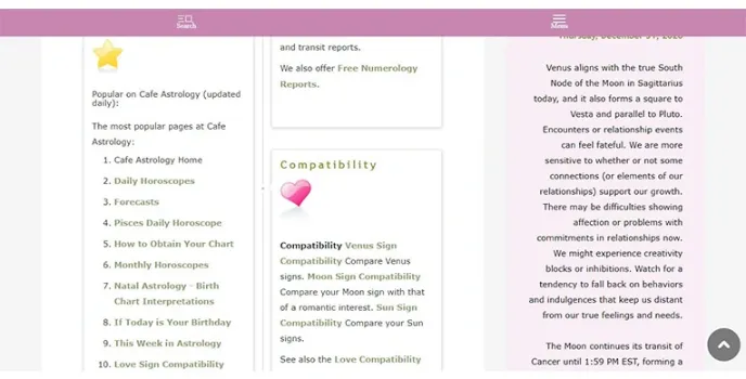 Visitors on these sites can view love-sign compatibility articles to read who is more suitable for their mindset and get reading to see if their venus signs and sun signs match well together to give the relationship a try. Cafe Astrology is one of the Best Horoscope Sites that will help people know their horoscopes regarding love and relationships. This platform lists better dates of the year for love and dating and potential challenging dates for love relationships.