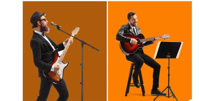 The hardshell guitar case is high-quality wood and exclusive leather interiors and secure latches for a sturdy look. Meetings and podcasts. Floor guitar stands are lightweight with flip-lock silicone suitable for various musical instruments.