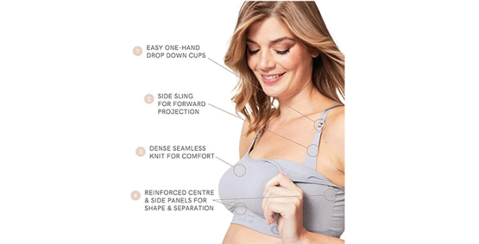 This best nursing bra is a no wire, but double-layered fabric densely knit with high-quality yarn helps support the breasts during repeated feeding sessions. It has a pull-on closure that adds more value.