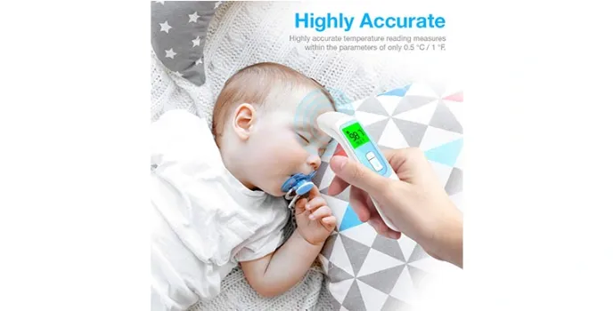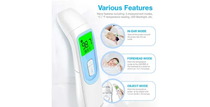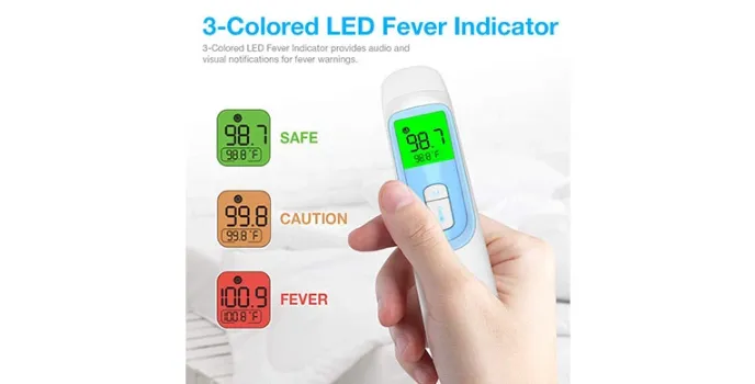 It includes one or two lenses, three different color displays, and is made with hard plastic. The outstanding infrared thermometers emit a small green, orange, and red laser point that accurately works the device. The green color indicates you are completely safe, and the Orange color suggests that you need to be cautious. The red color means you have a fever of 100 degrees. These are the most significant features of this medical equipment.