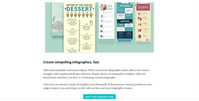 If you are browsing for image editing software, then you must look at Canva - the stylish app for all purposes. The infographic designer creates a compelling infographic fast and vividly, which gives beautiful data that is easy to digest. It provides a struggle-free designed software giving a simple choice to the infographic template.