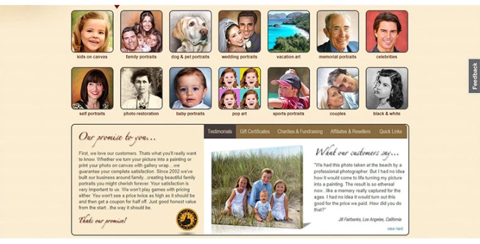 Canvas art is relatively inexpensive and affordable, and literally, anybody can get on this website and make use of it, which is not the same for World Market art sites or 20x200. This website runs high on customer satisfaction, and making the customer happy is their topmost priority. Launched in 2002, this website provides the ability to turn a picture into a painting or even print your photos on canvas. Beautiful family portraits, holiday cards, birthday cards, invitations, this website adds value to your homes.