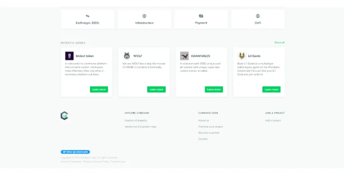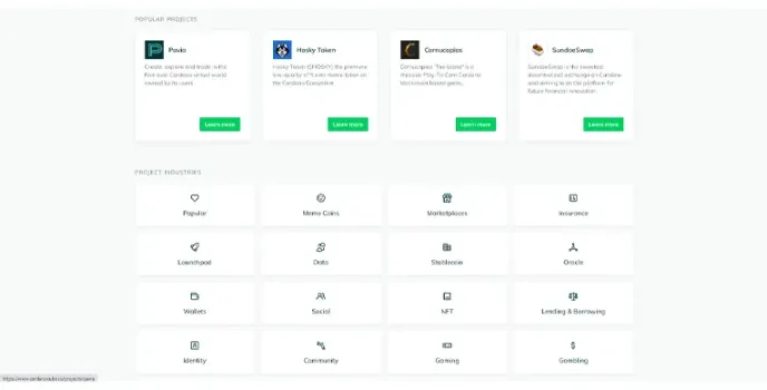 It allows a vast space for its retailers to add or promote their projects. Here You will find an Interactive Ecosystem Map that will guide the way to your desired project. It includes dapps such as wallets, lending and borrowing, marketplaces, Cardano ADA Launchpad, meme coins, and many others. This high-quality and unbiased information will provide you with unbeatable project success.