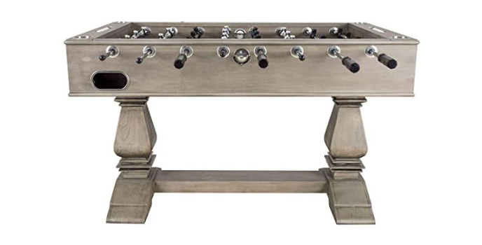 Make the Montecito fifty-five-inch Foosball Table an inviting and informal environment in your game room. This foosball table is the perfect complement to your decor, made with solid birch and glazed with a multi-stage driftwood finish. With an excellent cross-supporting playing area, the surface remains constant as the competition heats up. The action continues to roll along with the inox- steel rods, E-Z spin bearings, and automatic ball return.