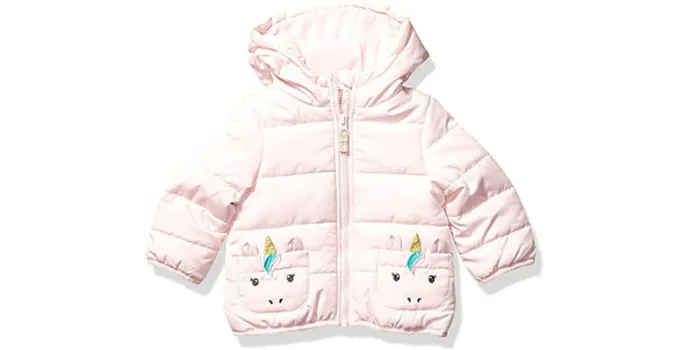 It has high synthetic insulation keeping warm on trails, fleece-lined pockets with adjustable hood caps, and zipper hand pockets. Carter's Winter coats are rather known for their material choice and comfortable designs with better toddlers' adjustment.
