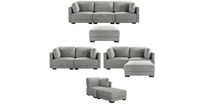 You can customize this Casa Andrea Milano sectional into a 2-3 seater sofa, or you can use it as a chaise lounge, a comfortable loveseat, or change it to other additional positions for the matter. This Andrea sofa includes a right-facing corner seat, a left corner seat, a chaise ottoman or coffee table, middle seat and two accent pillows for the matter.
