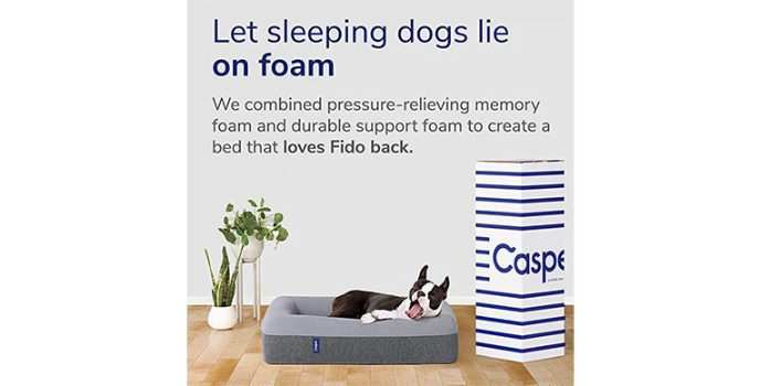 Casper has combined memory foam with long-lasting foam support for creating a bed. The bed's supporting foam bolsters also create a safe space, literally and figuratively, for dogs to lay their heads.