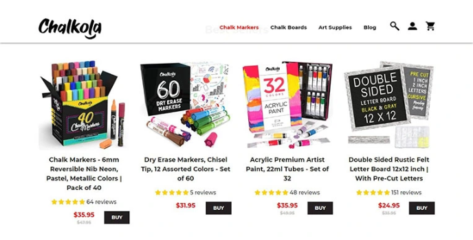 The best-selling products from Chalkola include Chalk Markers that have a reversible Neon Nib Pastel along with striking metallic Colors. It comes with a pack of almost 40 Chalk markers of different color shades. The Washable Dot Markers, Acrylic Paint Marker Pens Chalkola Dry Erase Markers, Vintage Colors Chalk Markers, and many more.