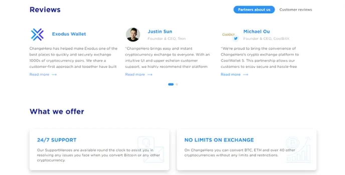 ChangeHero provides a supportive team for 24/7 hours. They are available to resolve usersβ issues facing during the conversion of Bitcoin and any other cryptocurrencies.