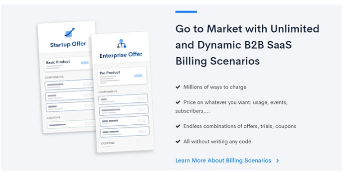 - Unlimited and dynamic B2B SaaS billing scenario