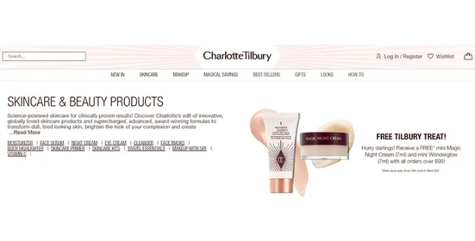 Charlotte Tilbury's Skincare products range from moisturizers, face serum, and night cream to apply when sleeping, eye cream, face masks, makeup, body highlighter, and skincare kits. It is one of the most trusted luxury skincare brands, effective for dry eyes, skin, and hair.