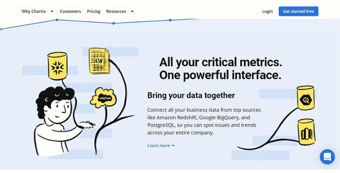 Chartio is a data mining software that provides various tools for creating powerful dashboards from its data and helps discover insights quite quickly.