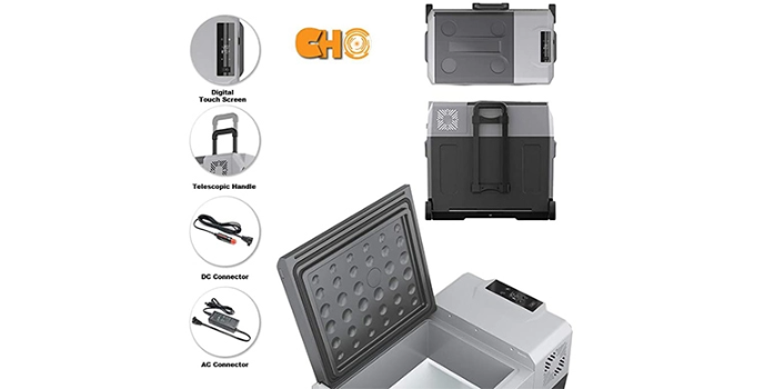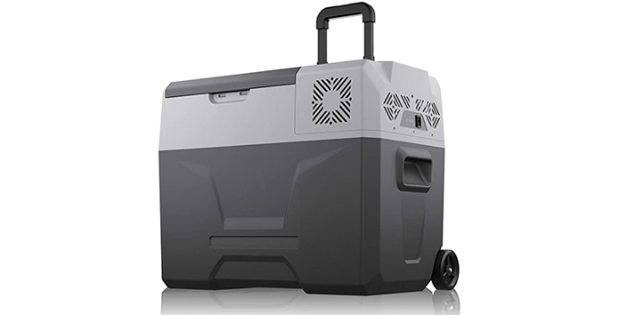 CHO power sports camping freezer has been designed for durability and long-term use and comes with wheels and a telescopic handle for easy use.