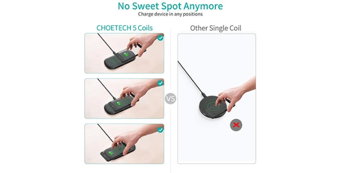 - Wireless charger pad with 5 coil to fast charging