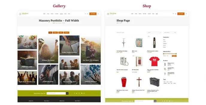 This theme will help you add categories, plugins, layouts, clipart, and specific technical features to make this website user-friendly. You can add events, ministries, sermon pages, and several plugins like a calendar; it supports giving, woocommerce, giving a donation, and many others.