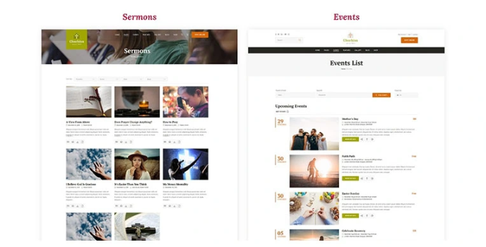 This theme will help you add categories, plugins, layouts, clipart, and specific technical features to make this website user-friendly. You can add events, ministries, sermon pages, and several plugins like a calendar; it supports giving, woocommerce, giving a donation, and many others.