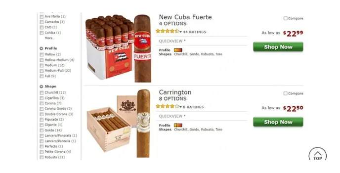 Cigars International is the best online cigar store online selling handmade cigars in exotic flavors at affordable prices. Taste is the predominant feature in this brand, and it promises a versatile taste with different flavors. This online store sells samplers of leading cigar brands like LA Gloria Cubana and Romeo v Julieta.