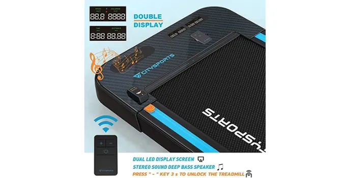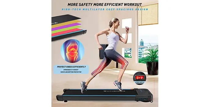 CitySports under desk treadmill has highly secured features even people did not wear shoes while walking or running then this sturdy treadmill design can't strain people's legs. If any unexpected event happens, then this flat treadmill will stop automatically. Its magnesium-aluminum alloy frame is friendly for kids and pets to touch this machine without fear.