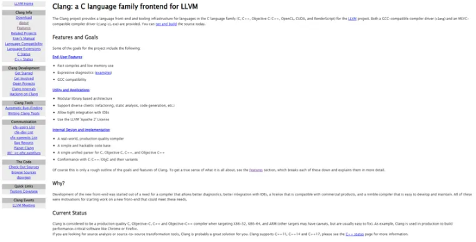 The Clang Compiler is meant to function similarly to other compilers. Clang has three stages of operation. The front end is used to parse source code in the initial step. It looks for problems in the code and generates a language-specific Abstract Syntax Tree to use as input. The optimization is the second step responsible for improving the AST created by the frontend. The back end is the third and final stage.