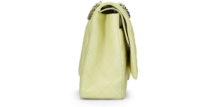 This classic flap maxi makes it among the most fashionable Chanel shoulder bags that come with the diamond quilting pattern. The signature stitching on this Chanel iconic bag takes on a diamond pattern and makes it among the list of most popular Chanel bags. It has been crafted in smooth lambskin leather along with silver-tone hardware and comes with the ‘CC’ clasp which is the inimitable and timeless seal of Chanel bags, be it new Chanel handbags or the iconic ones. This among the Chanel handbag bags works best to keep and carry your belongings like money, keys, mobile and also your favourite shade of lipstick, shades and intoxicating body perfumes. With its smooth finish and perfect pattern, this handbag is sure to belong to the list of classic handbags that are stylish and super chic. Best Classic Green Chanel Handbag makes for a classy and sassy choice. Find some more matching colored handbags for multipurpose, Black Lambskin Chanel Handbag and Chanel taupe Quilted Handbag with iconic chain links to meet all handlind requirements.